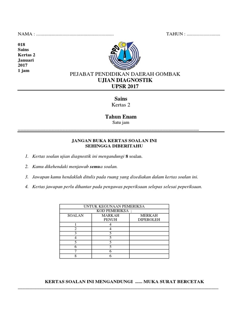18+ Soalan Upsr 2017 Sains Kertas 2 Images. Soalan percubaan upsr 2018 sains kertas 1. Harapan kita usaha ini dapat meningkatkan lagi prestasi murid di masa akan datang.