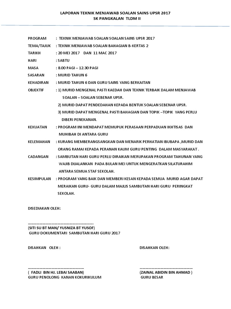 Murid perlu screenshot / printscreen sebagai evidens telah menyelesaikan. Berikut merupakan cadangan jawapan bagi kertas sains kertas 1. Modul kecemerlangan upsr 2017 sekolah kebangsaan (semua subjek). Download as docx, pdf, txt or read online from scribd.
