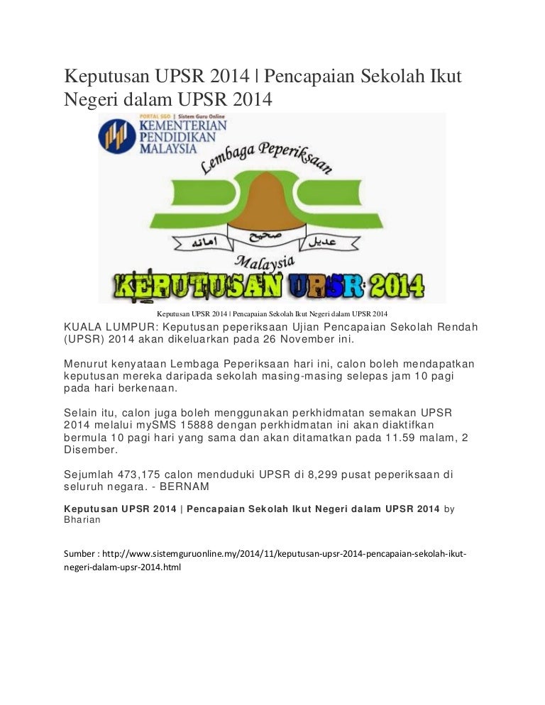 Seramai 15 orang daripada 58 orang telah berjaya mendapat 5a dalam upsr. Perkhidmatan semak keputusan spm akan diaktifkan bermula jam 10 pagi, 20 mac 2014 dan akan ditamatkan pada 11.59 pm, 26 mac 2014. About check spm results online. Tarikh keputusan upsr 2019 adalah 21 november 2019.